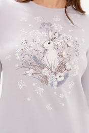 Лонгслив прямого силуэта от брнеда NELVA - идеальное решение для переменчивой погоды. Изготовленный из мягкого хлопкового полотна, он обеспечивает свободу движений и невероятное чувство комфорта. Лаконичный дизайн позволяет легко интегрировать его в гардероб, комбинируя с джинсами, трикотажными или классическими брюками. Овальный вырез горловины добавляет утонченности и гармонии в образ. Спереди выполнен дизайнерский принт «Кролик», декорированный стразами, добавляет эффектный акцент. Этот лонгслив станет отличным выбором для уверенных в себе женщин, ценящих комфорт и стиль. С любовью и заботой о Вас, команда бренда NELVA!