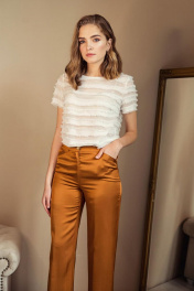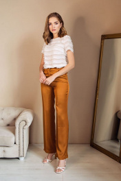 Брюки из атласного полотна с высокой посадкой и свободным силуэтом Nelva 3748 охра