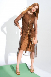 Платье по фигуре из кружевного полотна ниже колен Nelva 51179 медно-черный