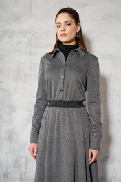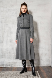 Платье женское от бренда NELVA - это идеальный выбор для женщин, ценящих комфорт и стиль. Данная модель изготовлена из трикотажного полотна. Платье приталенного силуэта с отложным воротником-стойкой. Слегка спущенная линия плеча и рукава с разрезом, манжетой и застежкой на пуговицы делают модель идеальным выбором для непринужденного и расслабленного стиля. Застежка расположена спереди по центру в виде пуговиц до линии талии. Платье отрезное по линии талии, с втачным поясом-резинкой, что позволяет не стеснять движения, скрывать недостатки и подчеркнуть достоинства фигуры. В боковых швах имеются узкие шлевки для продевания пояса из основного полотна, с металлическими полукольцами. Спереди в шов пояса заложены и закреплены строчками симметричные складки. Универсальный дизайн позволяет создавать стильные образы для отдыха, романтических встреч, рабочих будней и учебы.