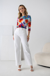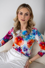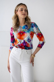 Блузка прямого силуэта с круглым вырезом горловины. Визуально удленяет шею. Рукава втачные, 3/4. Ткань вискоза с эластаном. Практичная. Яркие дизайны. Хороший пошив и посадка. Блузка сделана из приятной ткани и не принесёт дискомфорт в ее ношении. Качество пошива позволяет стирать ее в стиральной машине без усадки и расхождения швов. Блузка женская большого размера будет прекрасно смотреться в комплекте с брюками классическими, джинсами большого размера и с юбкой, каждый раз помогая Вам создавать новый неповторимый образ. Практичная ткань, современный стиль, интересный дизайн, свободный покрой, широкий размерный ряд.