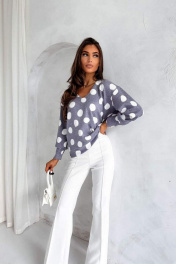 Джемпер свободный с V-образным вырезом и декоративными пуговицами Nika.PL 020152 горошек