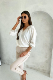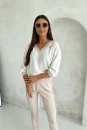 Белая повседневная блузка с рукавами 3/4 и элегантной линией Nika.PL 020201 молочный