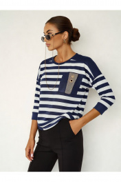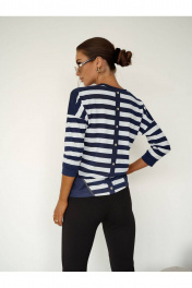 Обратите внимание на таблицу замеров! Блузка женская повседневная выполнена из мягкого польского трикотажа с добавлением вискозы, что делает ее не только стильной, но и комфортной в носке. Прямой силуэт блузки подчеркнет достоинства вашей фигуры. На груди блузка украшена потрясающим "сеткой-карманом"с люверсами, что придает ей особый шарм. Круглый вырез горловины делает модель универсальной и подходящей для любого случая. Спина в полоску, с декоративными пуговицами на планке по середине спинки, что создает элегантный и захватывающий вид.