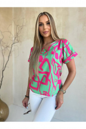 Блуза из вискозы с V-образным вырезом и короткими рукавами Nika.PL 040105 зелено-розовый