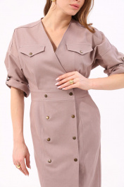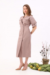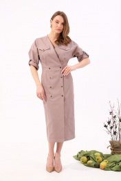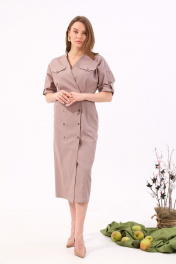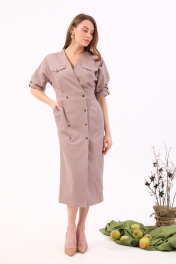 Платье джинсовое двубортное миди с карманами NikVa 362-9 песок