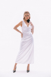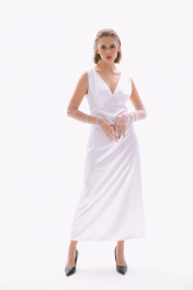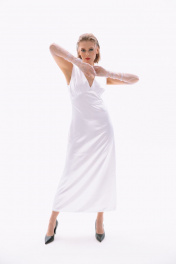 Белое платье в пол прилегающего силуэта с длинными перчатками NikVa 410-1 молоко