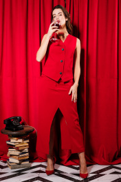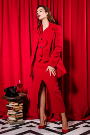Трехпредметный нарядный костюм из текстиля с воротником NikVa 442 алый