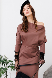 Платье летучая мышь из трикотажа в демисезон NikVa 445-2 шоколад