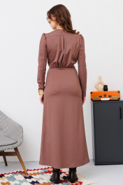 Приталенное платье с сборками и V-образным вырезом из трикотажа NikVa 448-1 шоколад
