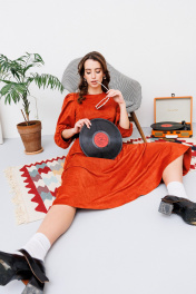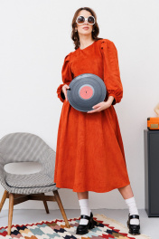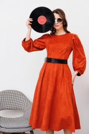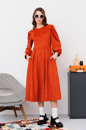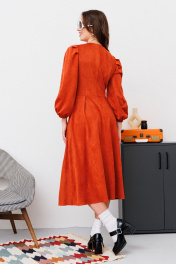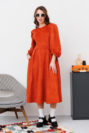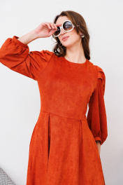 Миди платье из искусственной замши и трикотажа с вытачками NikVa 449-1 терракот