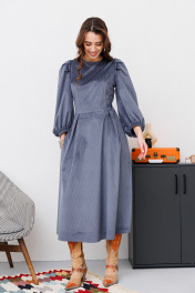 Миди платье из вельвета с нагрудными вытачками и складками NikVa 449-2 графит