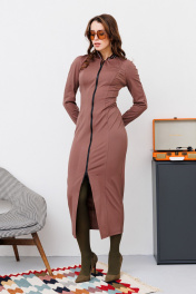 Приталенное трикотажное платье с молнией и реглан-рукавом NikVa 450-2 шоколад