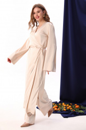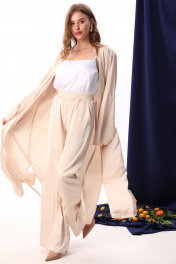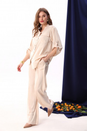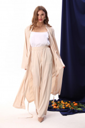 Брюки свободного кроя из атласа с карманами и резинкой NikVa 705-5 крем-брюле