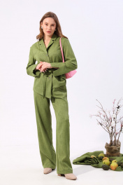 Брюки свободного кроя на резинке из текстиля NikVa 705-7 зелень