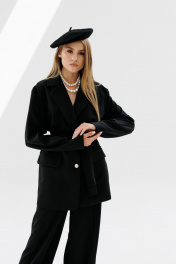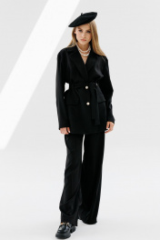 Жакет прямого силуэта с съемным поясом из текстиля NikVa 714-2 чёрный