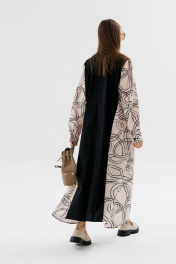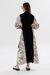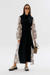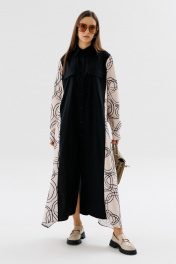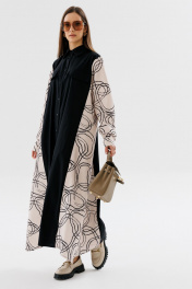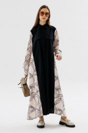 Демисезонное классическое платье-рубашка в пол с пояском NikVa 718-3 чёрный+беж_разводы