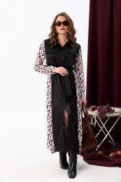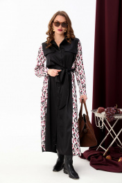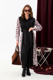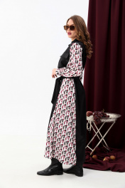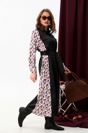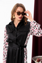 Платье-рубашка классическое с поясом и объемными рукавами NikVa 718-5 чёрный+ромбы бургунди