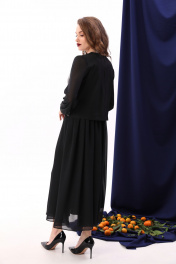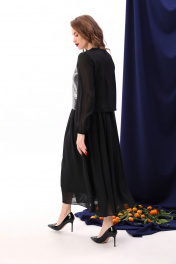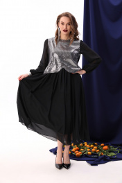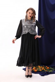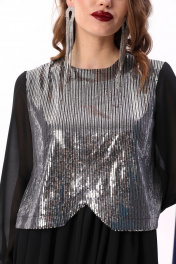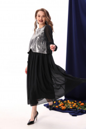 Платье макси с пайетками и комбинированным лифом NikVa 740-8 чёрный+серебро