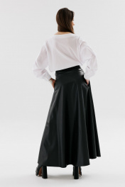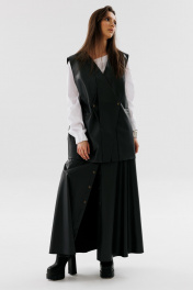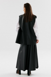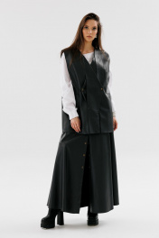 Демисезонный костюм 2 предмета из экокожи с юбкой и жилетом NikVa 741-1 чёрный