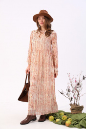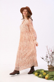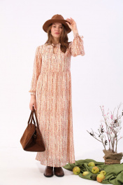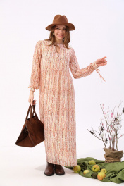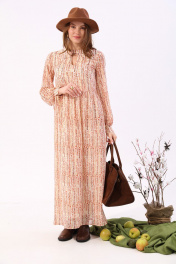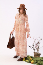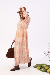 Платье макси с V-образным вырезом и разрезом NikVa 801-3 песочный