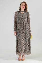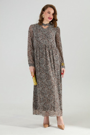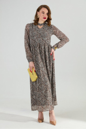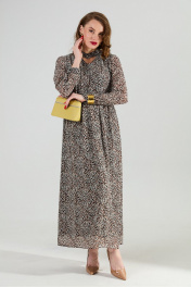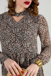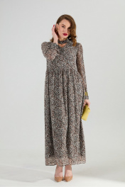 Платье макси прямого силуэта с V-образным вырезом, отрезное по линии талии. Горловине с имитацией чокера, застёжка на петлю и декоративную пуговицу. Рукав немного приспущен, по низу собран на манжет с петлей и пуговицей. Изделие на подкладке. Фурнитура может отличаться от заявленной на фото.