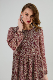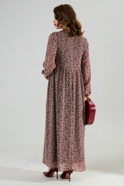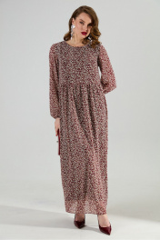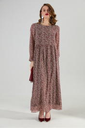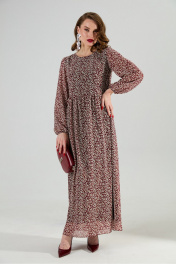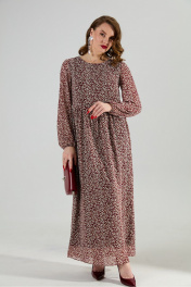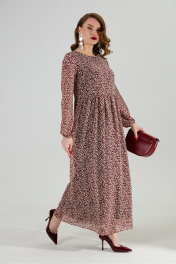 Платье макси прямого силуэта с округлым вырезом, отрезное по линии талии. Рукав немного приспущен, нижний край рукавов оформлен резинкой. Изделие на подкладке.