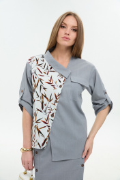 Жакет NikVa 902-14 серый_листья_мультиколор