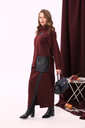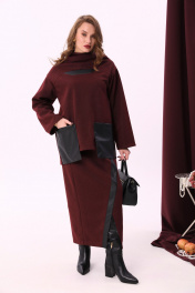 Юбка на резинке симметричная с запахом из трикотажа NikVa 907-1 винный+чёрный