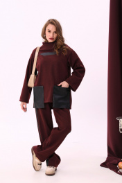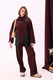 Костюм из джемпера и брюк с лампасами из отделочной ткани NikVa 908-1 винный+чёрный
