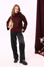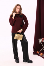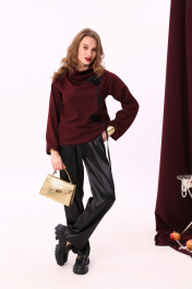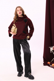 Брюки и джемпер нарядный костюм из трикотажа с широкими ремнями NikVa 922-1 бордо+чёрный