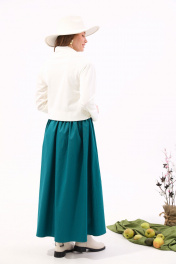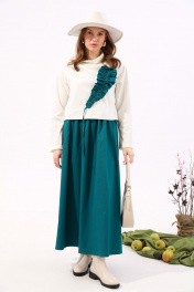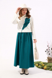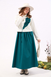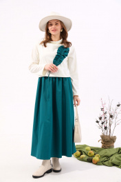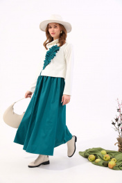 Платье из джинса и трикотажа с отделочной юбкой и хомутом NikVa 924-3 молоко+изумруд