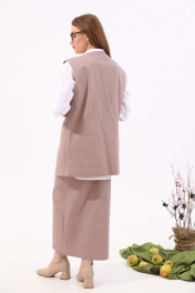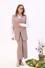 Бежевый джинсовый костюм с жилетом и юбкой NikVa 935-1 песок