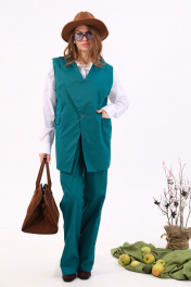 Бирюзовый джинсовый жилет оверсайз с прорезными карманами NikVa 936-2 изумруд