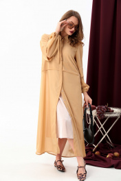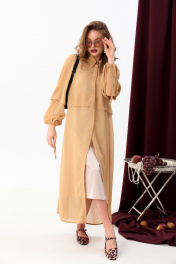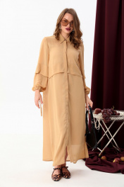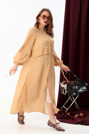 Платье с складками и рубашечным воротником, двухслойное NikVa 943-2 песок