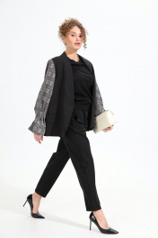 Брюки, жакет NikVa 950-2 чёрный+серая клетка