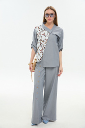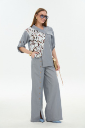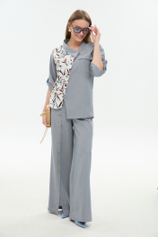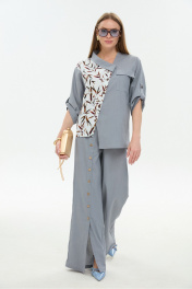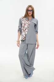 Брюки, жакет NikVa 978-3 серый_листья_мультиколор