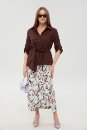 Жакет, юбка NikVa 980-6 шоколад_и_ листья_мультиколор