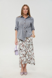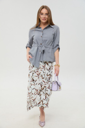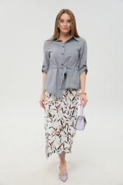 Жакет, юбка NikVa 980-8 серый_и_листья_мультиколор