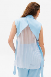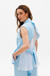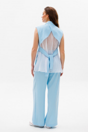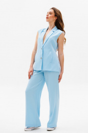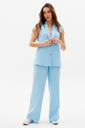 Голубой костюм из ткани с жилетом и свободными брюками NikVa 503-1