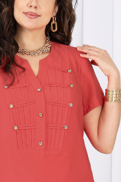 6003 Комплект брючный Костюм двойка сочетает в себе элементы делового и офисного стиля, что позволяет использовать его не только для торжественных случаев, но и для ежедневной работы в офисе. Его универсальность и лаконичность дизайна подойдут для самых разнообразных событий, будь то корпоративный вечер, праздничный ужин или важное деловое совещание. Натуральная ткань обеспечивает дышащий эффект, поддерживая комфорт в теплую погоду. Комплект брючный 2-х предметный, состоящий из блузки и брюк. Блузка полуприлегающего силуэта, выполнена из вискозного полотна. Модель с плечевыми накладками и разрезами в боковых швах. Перед декорирован вставками с застроченными вертикальными защипами и отрезными фигурными планками, застегивающимися на 3 петли и 3 пуговицы. От планок к швам притачивания вставок направлены навесные петли, застегнутые на пуговицы. Спинка со средним швом; круглая горловина спинки обработана отрезной фигурной бейкой. Рукав короткий, втачной. Длина блузки – 66,5 (46-50 р-р) см, 69 см (52-60 р-р); длина рукава – 19,5 см (46-50 р-р), 20,0 (52-60 р-р) см. Брюки классические, с посадкой на талии, выполнены из вискозного полотна. Модель с центральной застёжкой на тесьму-«молнию», на притачном поясе, застегивающемся на петлю и пуговицу. Передние и задние половинки брюк с талиевыми вытачками, направленными от пояса вниз. Спереди обработаны боковые наклонные карманы. Для лучшего прилегания брюк в области талии в поясе по задним половинкам вставлена эластичная лента. Длина брюк по боковому (с поясом) – 101,5 см (46-50 р-р), 102,5 см (52-54 р-р), 103,5 см (56-60 р-р).