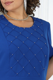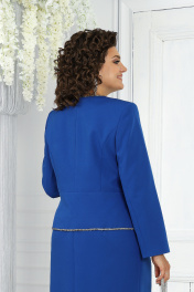 6021 Комплект женский Этот костюм подойдет для женщин, предпочитающих классический стиль с элементами изысканности, удобное лекало и продуманные детали обеспечивают комфорт в больших размерах, делая комплект идеальным выбором для полных женщин. Прекрасный вариант для тех, кто ищет сочетание офисного и праздничного наряда. Комплект женский 2-х предметный, состоит из жакета и платья, из костюмно-плательной ткани. Жакет полуприлегающего силуэта, отрезной по линии талии, на подкладке. Длина по среднему шву спинки 55,0 см. Перед с рельефными швами из проймы до шва по линии талии проходящими через центр груди, с центральной застежкой на 8 потайных крючков, борта закруглённые. Спинка со средним швом, с рельефными швами из проймы до шва по линии талии. Горловина переда и спины округлая, углублённая спереди, обтачная. Рукава втачные, двушовные, длиной 61,0 см. Горловина, край борта и низ жакета украшены декоративной тесьмой. Изделие с плечевыми накладками. Платье прилегающего силуэта, зауженное к низу, на подкладке. Длина по среднему шву спинки 107,0 см. Перед с рельефными швами из плечевого шва до низа, проходящие через центр груди, с отрезной по линии талии центральной частью, на верхней детали которой обработаны декоративные швы в виде ромбов, украшенные стеклярусом. Спинка с талевыми вытачками, с средним швом, в верху которого обработана застёжка на потайную тесьму-«молнию», по низу шва обработана шлица. Горловина обтачная, углублённая спереди, круглая. Рукава втачные, одношовные, длиной 27,0 см. Изделие с плечевыми накладками.