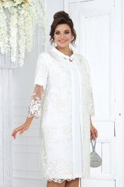 Элегантный кружевной комплект из кардигана и платья для особых мероприятий Ninele 6040 молочный