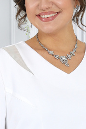 6040 Комплект женский Этот костюм состоит из кружевного кардигана и платья, создает великолепный и элегантный образ для особых мероприятий. Кружевной кардиган играет важную роль в формировании правильного силуэта. Его утонченный узор и легкая ткань создают эффект легкости и воздушности, и при этом подчеркивают достоинства фигуры. Он мягко облегает тело, придавая образу изящество и стиль. Этот комплект станет вашим идеальным выбором для любого важного события Комплект женский 2-х предметный, состоящий из кардигана и платья. Кардиган полуприлегающего силуэта, выполнен из гипюра. Модель без подкладки и плечевых накладок. Перед с нагрудными вытачками, направленными от пройм, и отрезной планкой по борту. Спинка с талиевыми вытачками. Круглая горловина оформлена воротником-стойкой с застежкой на металлический крючок. Планки и воротник выполнены из костюмно-плательной ткани. Рукав длиной 7/8, втачной. Низ переда, спинки и рукава оформлены фестонами. Длина кардигана-105 см, длина рукава-50 см. Платье полуприлегающего силуэта, выполнено из костюмно-плательной ткани. Модель на трикотажной подкладке, без плечевых накладок. Перед с нагрудными вытачками, направленными от пройм; в области плеч обработаны две треугольные вставки из шифона, декорированные стразами. Спинка с талиевыми вытачками и средним швом, в верхней части которого расположена застежка на потайную тесьму-«молнию», в нижней части- шлица. Горловина спинки округлой формы, по переду V- образной. Рукав короткий, втачной. Длина платья-103 см, длина рукава-26 см.