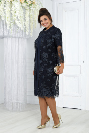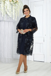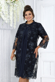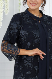 Элегантный кружевной комплект из кардигана и платья для торжественных случаев Ninele 6040 синий
