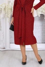 6096 Платье женское Это не просто вечернее платье — это уверенный образ, который подчеркивает статус, не требуя лишнего декора. Нежный блеск люрекса, мягкая фактура трикотажа и лаконичный, но выразительный силуэт создают эффектный, но одновременно сдержанный наряд для торжественных событий. Модель приталенного силуэта красиво обыгрывает талию: два длинных пояса, которые можно завязывать по-разному, превращают одно платье в множество вариантов — от строгого до более драматичного. Центральный разрез спереди добавляет движения, открывает шаг и придает образу лёгкость, не теряя изысканности. V‑образный вырез моделирует линию шеи, визуально удлиняет силуэт и идеально сочетается с украшениями. Длинный рукав делает платье уместным даже в прохладной обстановке, сохраняя гармонию и баланс между нарядностью и практичностью. Материал — трикотаж с фактурной лицевой стороной люрекс — отличается качеством и мягкостью, хорошо ложится по фигуре, подстраиваясь под формы, а подкладка обеспечивает комфорт. Благодаря продуманному крою, платье подходит для больших размеров и женщин с формами: подчёркивает достоинства, скрывает мелкие нюансы, делая силуэт стройным и элегантным. Идеально для: свадьбы, вечернего мероприятия, юбилея, корпоратива или любого торжественного выхода. Почему выбирают именно его: сияние без излишней пышности, продуманная посадка, универсальность и возможность легко менять стиль за счёт завязок. Надев это платье, вы получаете образ, который звучит дорого, выглядит современно и играет своей красотой при каждом шаге. Платье женское, приталенного силуэта, выполнено из трикотажного полотна с фактурной лицевой стороной «люрекс». Модель без застежки, на трикотажной подкладке, с плечевыми накладками. Перед платья с разрезом в среднем шве и горизонтальным подрезом по линии талии; лиф цельнокроеный с поясами, завязывая которые разными способами, можно изменять внешний вид модели. На спинке обработаны талиевые вытачки. Горловина V-образной формы спереди и округлой по спинке. Рукав втачной, длинный. Длина платья – 113 см; длина рукава – 57 см.