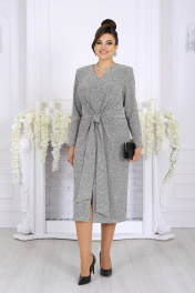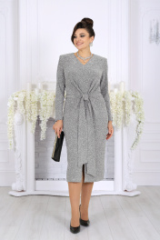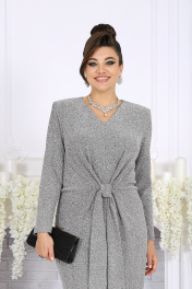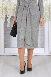 6096 Платье женское Это не просто вечернее платье — это уверенный образ, который подчеркивает статус, не требуя лишнего декора. Нежный блеск люрекса, мягкая фактура трикотажа и лаконичный, но выразительный силуэт создают эффектный, но одновременно сдержанный наряд для торжественных событий. Модель приталенного силуэта красиво обыгрывает талию: два длинных пояса, которые можно завязывать по-разному, превращают одно платье в множество вариантов — от строгого до более драматичного. Центральный разрез спереди добавляет движения, открывает шаг и придает образу лёгкость, не теряя изысканности. V‑образный вырез моделирует линию шеи, визуально удлиняет силуэт и идеально сочетается с украшениями. Длинный рукав делает платье уместным даже в прохладной обстановке, сохраняя гармонию и баланс между нарядностью и практичностью. Материал — трикотаж с фактурной лицевой стороной люрекс — отличается качеством и мягкостью, хорошо ложится по фигуре, подстраиваясь под формы, а подкладка обеспечивает комфорт. Благодаря продуманному крою, платье подходит для больших размеров и женщин с формами: подчёркивает достоинства, скрывает мелкие нюансы, делая силуэт стройным и элегантным. Идеально для: свадьбы, вечернего мероприятия, юбилея, корпоратива или любого торжественного выхода. Почему выбирают именно его: сияние без излишней пышности, продуманная посадка, универсальность и возможность легко менять стиль за счёт завязок. Надев это платье, вы получаете образ, который звучит дорого, выглядит современно и играет своей красотой при каждом шаге. Платье женское, приталенного силуэта, выполнено из трикотажного полотна с фактурной лицевой стороной «люрекс». Модель без застежки, на трикотажной подкладке, с плечевыми накладками. Перед платья с разрезом в среднем шве и горизонтальным подрезом по линии талии; лиф цельнокроеный с поясами, завязывая которые разными способами, можно изменять внешний вид модели. На спинке обработаны талиевые вытачки. Горловина V-образной формы спереди и округлой по спинке. Рукав втачной, длинный. Длина платья – 113 см; длина рукава – 57 см.