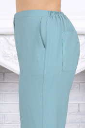 Это костюм, в котором удобно жить. И красиво — в любой ситуации. Идеален для весны и лета, для работы и отдыха, для особых случаев и повседневности. Универсальный выбор для женщин, которые ценят комфорт, эстетику и безупречное белорусское качество. Доступен в больших размерах — с учётом посадки, которая действительно работает. Комплект брючный 2-х предметный, состоящий из блузки и брюк. Блузка прямого силуэта, выполнена из вискозного полотна. Модель с втачным рукавом и плечевыми накладками. Перед с центральной застежкой на разъёмную тесьму «молнию». По переду и спинке блузки оформлены кокетки. По переду блузки настрочены накладные карманы с клапанами, входящими в шов кокетки. Горловина V – образная, оформлена отложным воротником. По линии талии предусмотрена кулиса с протянутой внутрь широкой эластичной лентой и шнуром, выполненным из основной ткани. Шнур регулируется металлическими фиксаторами, а на конце его закреплены металлические наконечники. Рукав втачной короткий. Длина блузки –66,0 см (50-58 р-р); длина рукава –21,0 см (50-58 р-р). Брюки классические, длинные, с посадкой на талии, выполнены из вискозного полотна. Модель без стрелок. Задние и передние половинки брюк с талиевыми вытачками, направленными от пояса вниз. Спереди обработаны наклонные боковые карманы и центральная застёжка на тесьму-«молнию». Притачной пояс застегивается на 1 петлю и 1 пуговицу; для лучшего прилегания по линии талии в притачном поясе предусмотрена эластичная лента, вставленная по спинке. Длина брюк по боковому (с поясом) –107 см (50-52 р-р.), 108 см (54-58 р-р.).