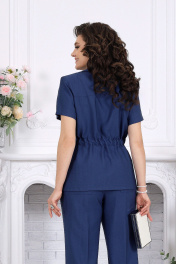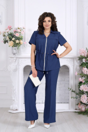 Это костюм, в котором удобно жить. И красиво — в любой ситуации. Идеален для весны и лета, для работы и отдыха, для особых случаев и повседневности. Универсальный выбор для женщин, которые ценят комфорт, эстетику и безупречное белорусское качество. Доступен в больших размерах — с учётом посадки, которая действительно работает. Комплект брючный 2-х предметный, состоящий из блузки и брюк. Блузка прямого силуэта, выполнена из вискозного полотна. Модель с втачным рукавом и плечевыми накладками. Перед с центральной застежкой на разъёмную тесьму «молнию». По переду и спинке блузки оформлены кокетки. По переду блузки настрочены накладные карманы с клапанами, входящими в шов кокетки. Горловина V – образная, оформлена отложным воротником. По линии талии предусмотрена кулиса с протянутой внутрь широкой эластичной лентой и шнуром, выполненным из основной ткани. Шнур регулируется металлическими фиксаторами, а на конце его закреплены металлические наконечники. Рукав втачной короткий. Длина блузки –66,0 см (50-58 р-р); длина рукава –21,0 см (50-58 р-р). Брюки классические, длинные, с посадкой на талии, выполнены из вискозного полотна. Модель без стрелок. Задние и передние половинки брюк с талиевыми вытачками, направленными от пояса вниз. Спереди обработаны наклонные боковые карманы и центральная застёжка на тесьму-«молнию». Притачной пояс застегивается на 1 петлю и 1 пуговицу; для лучшего прилегания по линии талии в притачном поясе предусмотрена эластичная лента, вставленная по спинке. Длина брюк по боковому (с поясом) –107 см (50-52 р-р.), 108 см (54-58 р-р.).