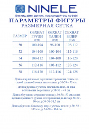 6109 Комплект брючный Праздничный брючный костюм тройка для женщин — идеальный вариант для праздника, торжества или вечернего выхода. Элегантность, комфорт и премиальное белорусское качество NINELE CHIC. Комплект состоит из блузки, классических брюк и изящного гипюрового кардигана, благодаря чему выглядит дорого и женственно. Комплект брючный 3-х предметный, состоящий из кардигана, блузки и брюк. Кардиган прямого силуэта, выполнен из гипюра. Модель без застежки, без подкладки и плечевых накладок. Перед с нагрудными вытачками, направленными от пройм. По линии горловины и бортам отложной воротник-шаль. Рукав втачной трехчетвертной, с притачными манжетами по низу. Длина кардигана – р.50-58 - 73 см; длина рукава – р.50-58 - 49 см. Блузка полуприлегающего силуэта, выполнена из трикотажного полотна «масло». Модель без плечевых накладок. Перед с V- образным вырезом по горловине, который оформлен пришивными бусинами. По спинке обработаны талиевые вытачки. Рукав короткий, втачной. Длина блузки- р.50-58 -59 см; длина рукава р.50-52 -30 см; р.54-58 -31,5 см. Брюки классические, длинные, с посадкой на талии, выполнены из костюмно- плательной ткани. Модель со стрелками. Передние и задние половинки брюк с талиевыми вытачками, направленными от пояса вниз. Спереди обработаны наклонные боковые карманы и центральная застёжка на тесьму-«молнию». Притачной пояс застегивается на 1 петлю и 1 пуговицу; для лучшего прилегания по линии талии в притачном поясе предусмотрена эластичная лента, вставленная по спинке. Длина брюк по боковому (с поясом) р.50-52 -103 – см; р.54-58 -31,5 см.